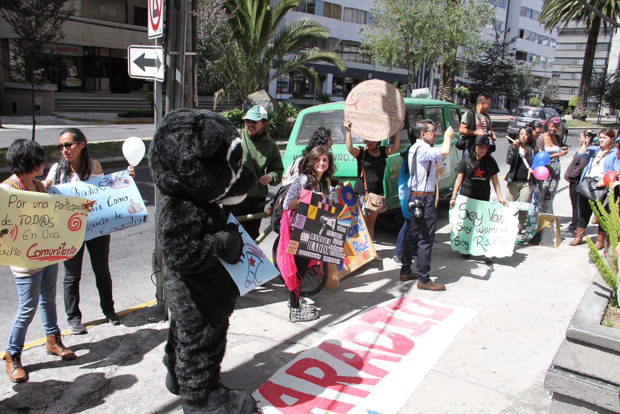 Este proceso lo vivimos de cerca cuando Wambra Radio, perteneciente al colectivo de comunicación El Churo, hizo la entrega simbólica de los documentos para acceder al concurso. La fiesta incluyó carteles, la presencia de una botarga de un oso de anteojos, el cierre de la caravana con El Churo Móvil y mucha música y fiesta. Con este trámite esperan ser la primera radio comunitaria operada por jóvenes que tenga un espacio en el cuadrante de la capital del país.