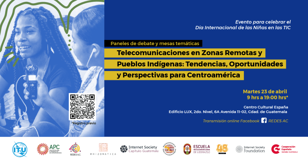 En miras de continuar el trabajo de incidencia en Centroamérica, el próximo 23 de abril de 2024 se llevará a cabo el foro “Telecomunicaciones en Zonas Remotas y Pueblos Indígenas: Tendencias, Oportunidades y Perspectivas para Centroamérica” en el Centro Cultural de España en la Ciudad de Guatemala, en donde personalidades de más de 10 países de Latinoamérica y autoridades del gobierno de Guatemala compartirán sus experiencias de buenas prácticas de políticas públicas en el tema.
