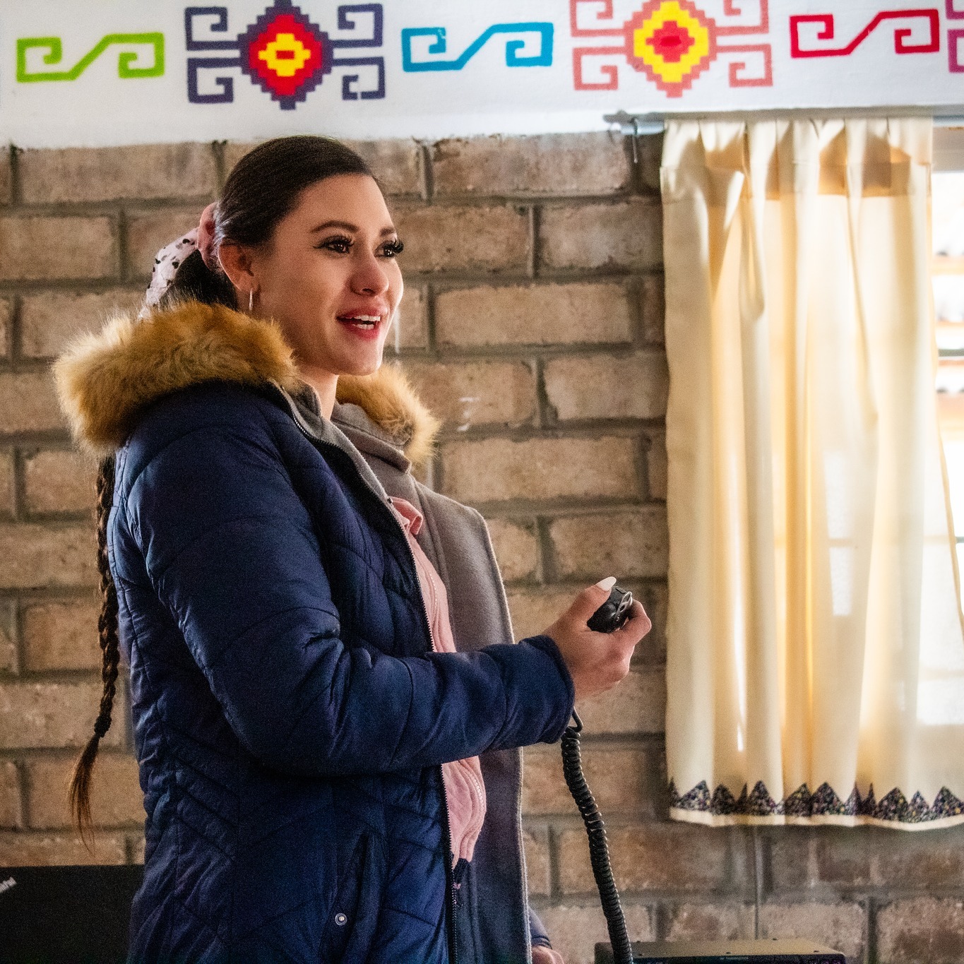 Niki, como le decimos de cariño, es una mujer joven, masewal, hablante del náhuatl, cooperativista, radialista indígena, defensora del territorio, feminista comunitaria y directora de Radio Tosepan Limakxtum y del primer operador móvil virtual indígena del país: Wiki Katat.