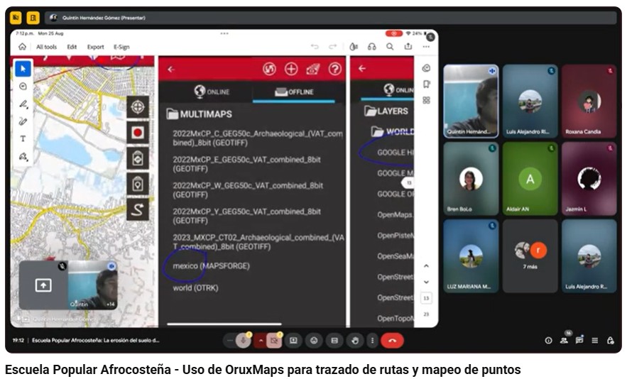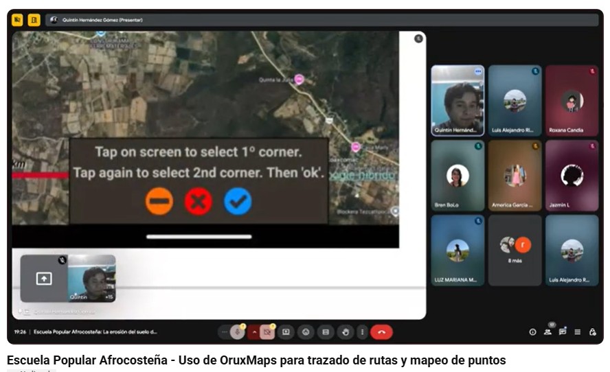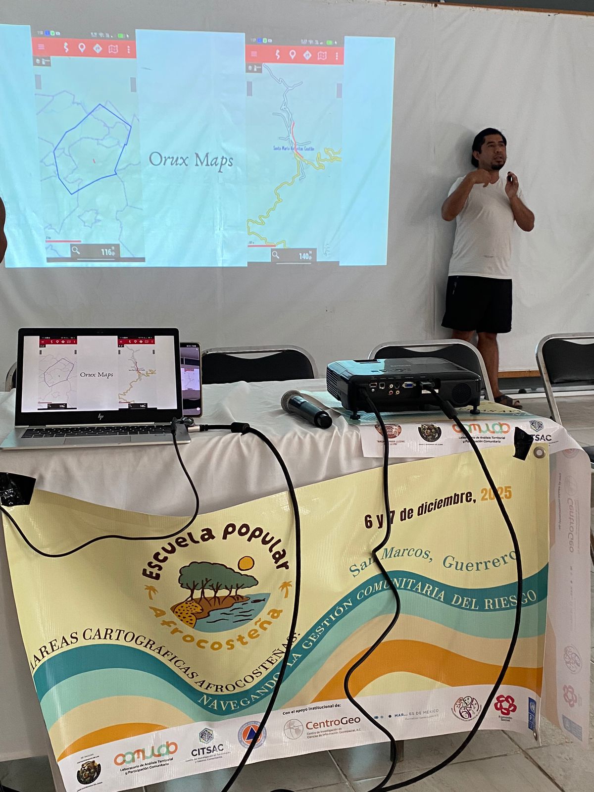 En este marco, durante 2025 se realizó una experiencia formativa orientada al fortalecimiento de capacidades en cartografía digital y gestión comunitaria del riesgo de desastres, promovida por el Grupo Transdisciplinario Afroaventura Tours, un colectivo comunitario de la Costa Chica de Guerrero que impulsa iniciativas de turismo comunitario, educación territorial y fortalecimiento de la identidad afromexicana. Durante 2024-2025, como parte del Programa de Apoyo a Proyectos de Investigación Aplicada del Centro de Investigación en Tecnologías y Saberes Comunitarios (CITSAC), este colectivo desarrolló un trabajo de investigación que tuvo como uno de sus principales resultados la creación de la Escuela Popular Afrocosteña, una iniciativa formativa pensada desde y para el territorio afrocosteño.
